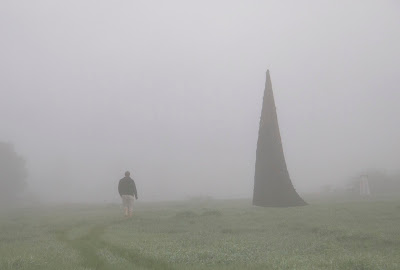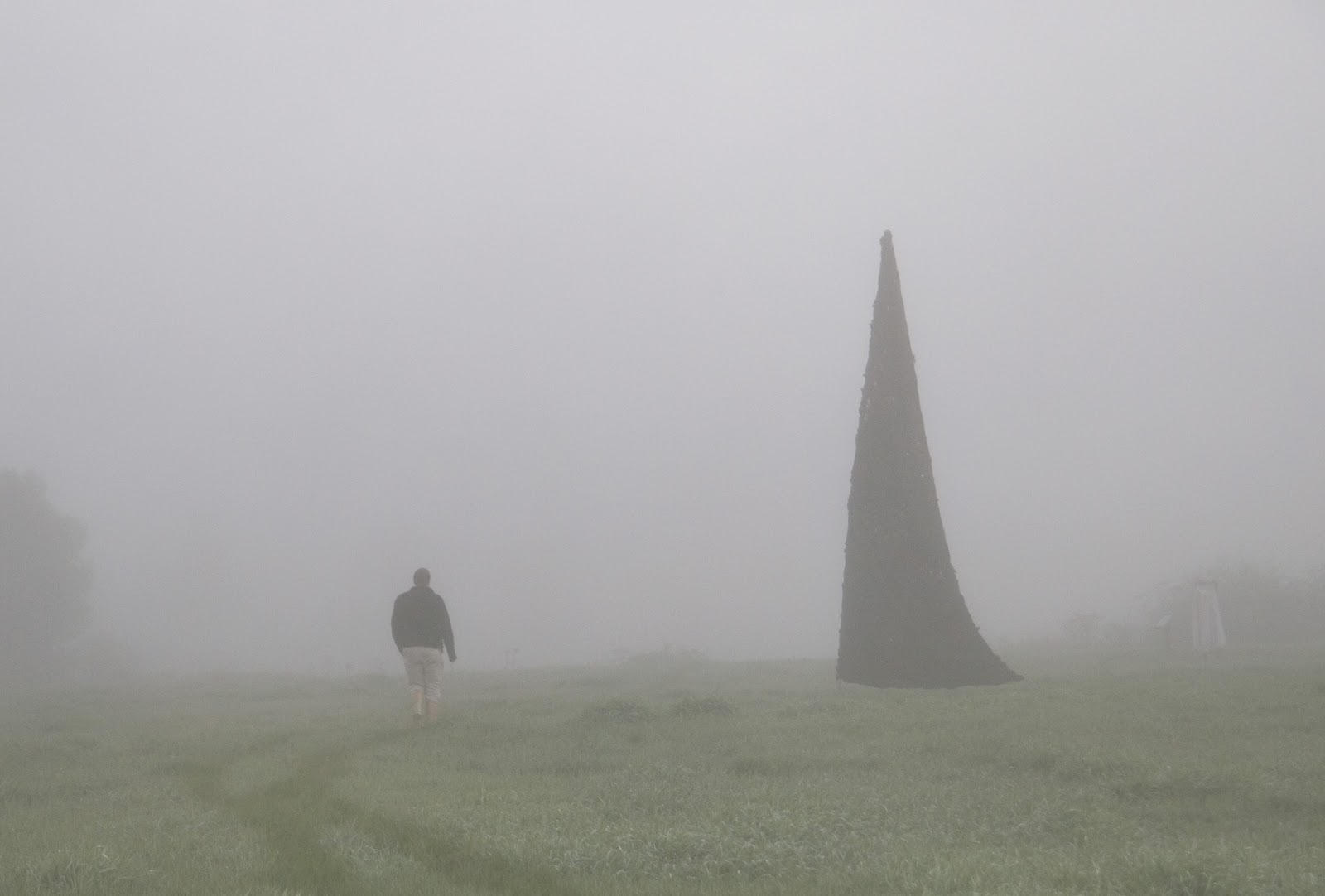 Pleiades was deinstalled today in the rain. It was sobering carrying the sodden sails off the field. In an installation that involved a community of helpers, this day was a solo act. With the mast and boom out of the sails a limp mixture of wool and wetness lay in my arms.
