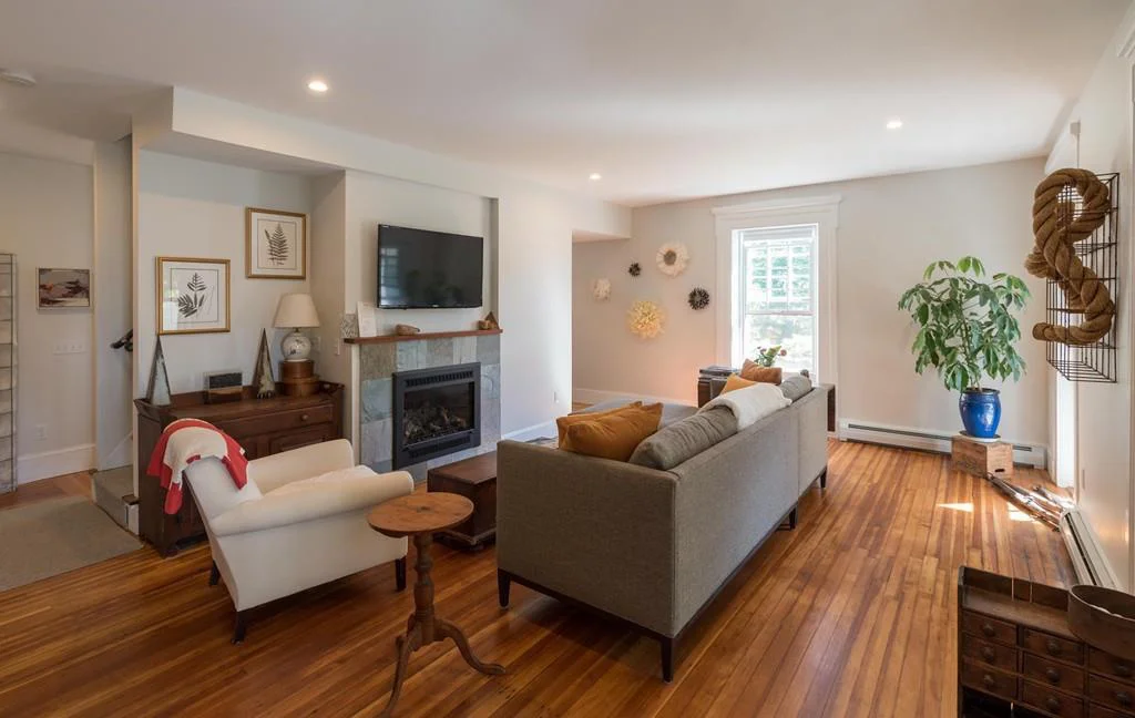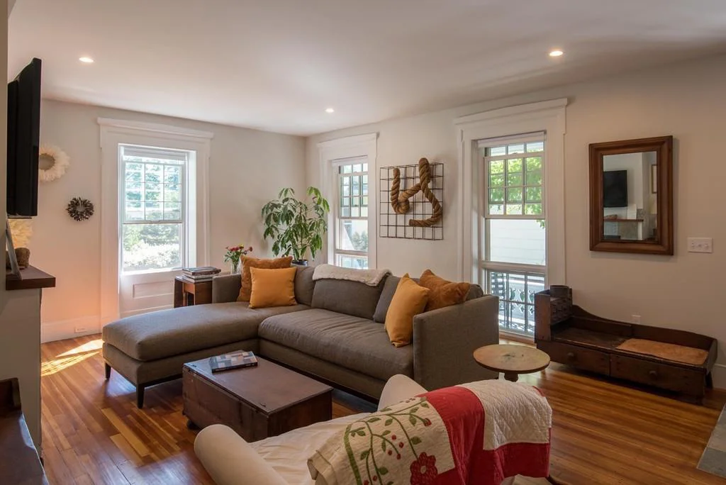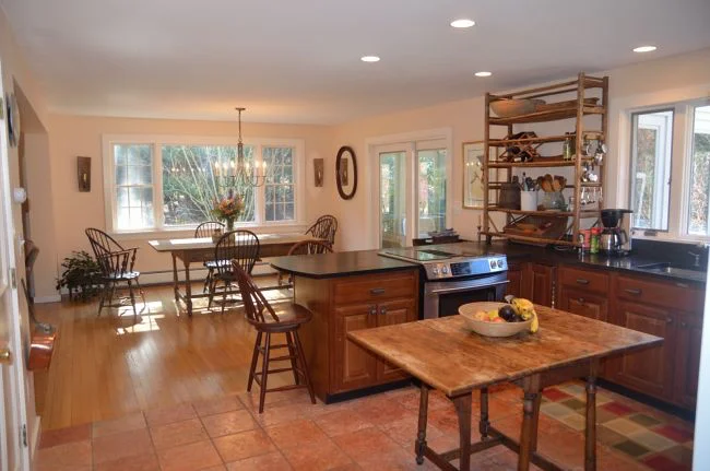 A suburban gambrel in Amherst, Massachusetts gets a budgeted facial uplift with new floors, windows, three season porch and cozy colors.